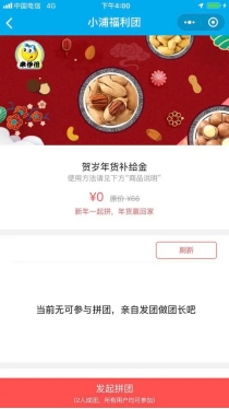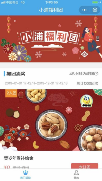 ·抱团抽奖:同拼团购物类似,组团后有机会参与抽奖和小游戏,由于拼团成功的礼品是通过抽奖几率获得,所以可以使用较低获客成本达到较高的营销预期结果。